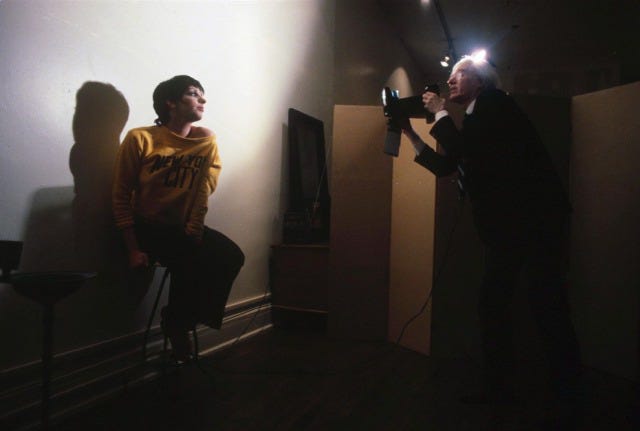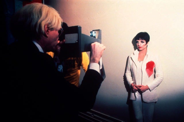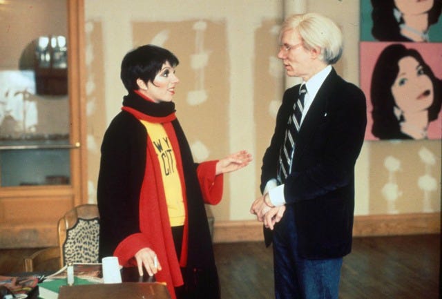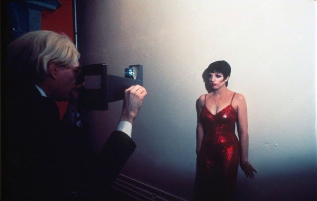 Andy Warhol and Liza Minnelli during a photoshoot at the Factory in New York City (1978)