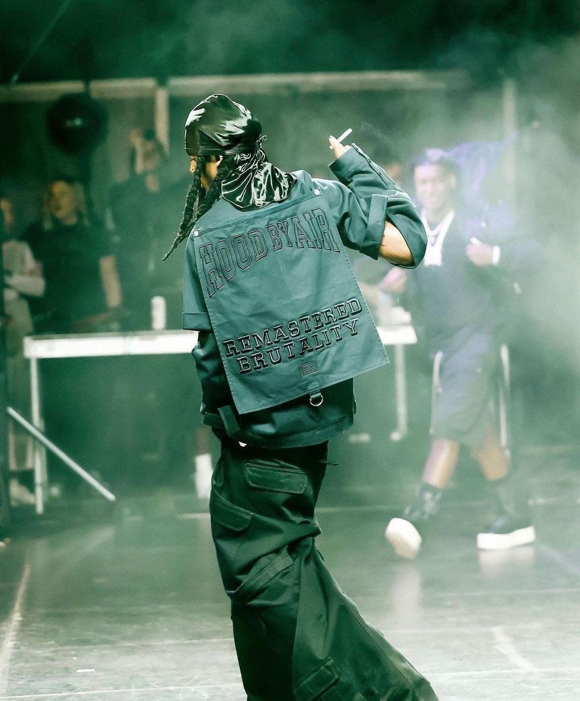 The same time Rocky came up, Hood by Air emerged from New York. The brand’s bold graphics and sportswear inspired clothing fit, as well as a price tag and exclusivity that made it ‘luxury streetwear’, fit in perfectly with Rocky’s look. The HBA aesthetic found its way into Rocky’s wardrobe immediately and over the years both would thrive. Hood by Air was a brand that brought streetwear and high fashion together, and sparked a shift in high fashion to become inspired by streetwear.