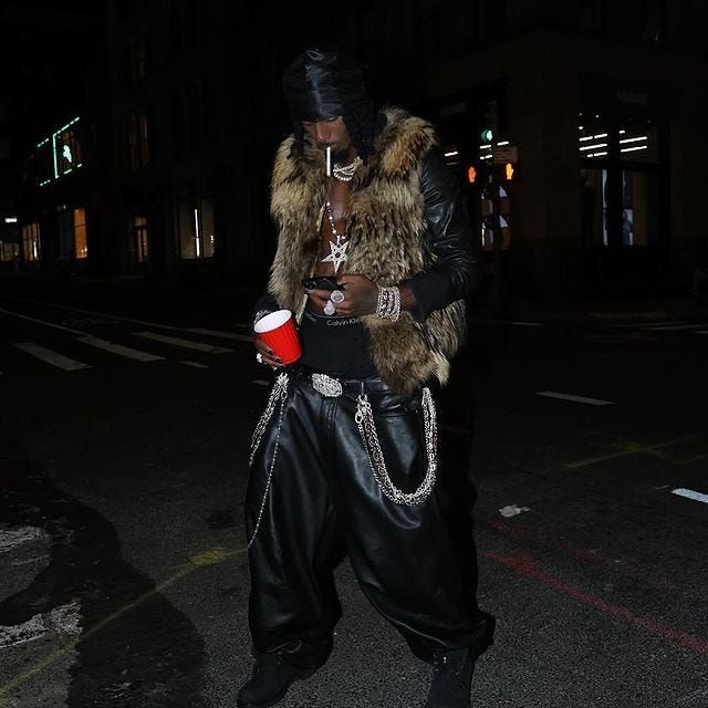 The origin of Street goth as a fashion aesthetic is muddled. Online there is general consensus that Rocky was at this point in his career taking inspiration sonically and aesthetically from Spaceghostpurrp and his group Raider Klan, however Rocky’s taste in fashion and persona has always been different from SGP, leading into a different way of developing the style. Here, we’ll focus on Rocky’s approach to the aesthetic.