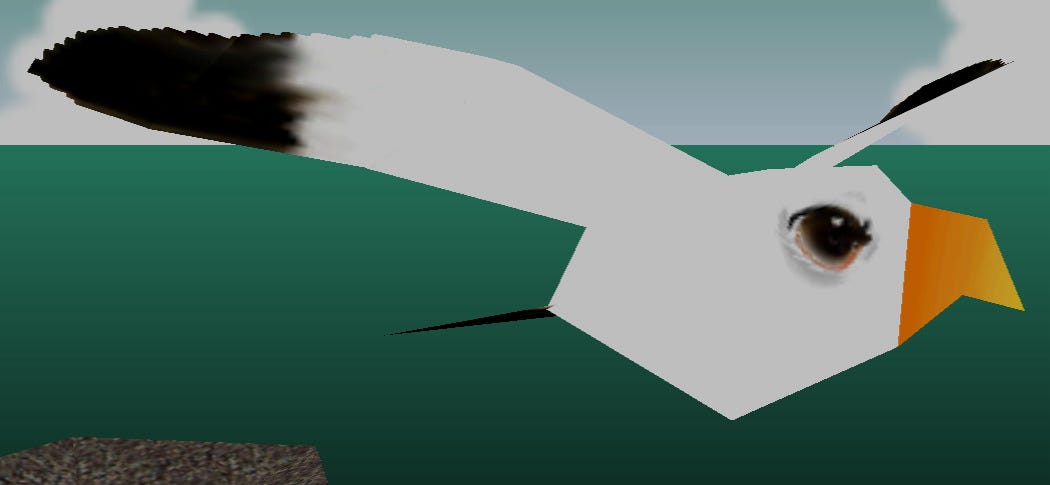 In Mario Kart 64, the seagulls in Koopa Troopa Beach are never seen up close during regular gameplay. However, viewing them in a model viewer reveals they have surprisingly detailed eyes.