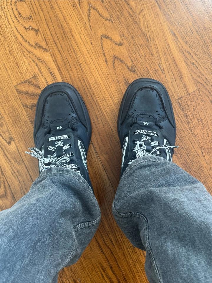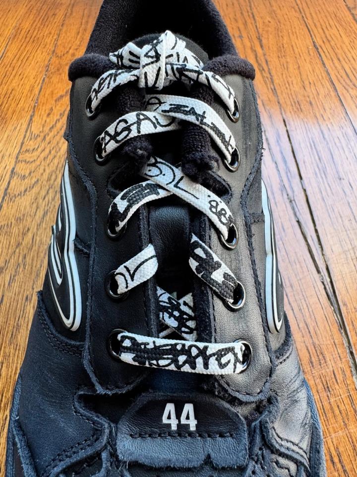 This attention to distressing is not new. Over the past decade, Balenciaga has consistently foregrounded temporality in its designs. Sneakers such as the Paris, released in 2022 in an intentionally shredded state, made time and wear part of the shoe’s language. The Triple S of 2017 exaggerated the scale of a running shoe until it became monumental, a pastiche of retro styles that looked as though it had already lived several lifetimes. The Track, released in 2018, layered so many panels and details that it seemed aged from over-engineering alone. Later, the Defender with its tire-like sole embraced the idea of erosion and abrasion directly in its form. Each of these shoes treated time not as something that happens to a sneaker, but as something embedded in its very design.