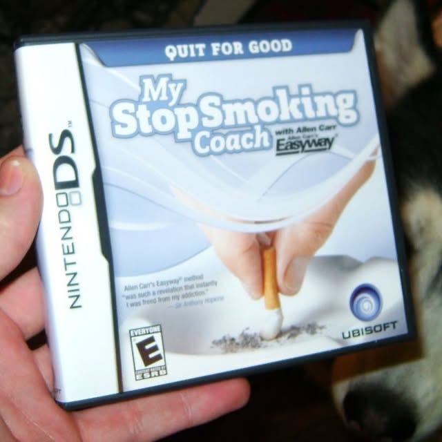 Backed by Ubisoft and built around Allen Carr’s “Easyway.” The game had 12 lessons, mini-games, and trackers designed to help you break your addiction.