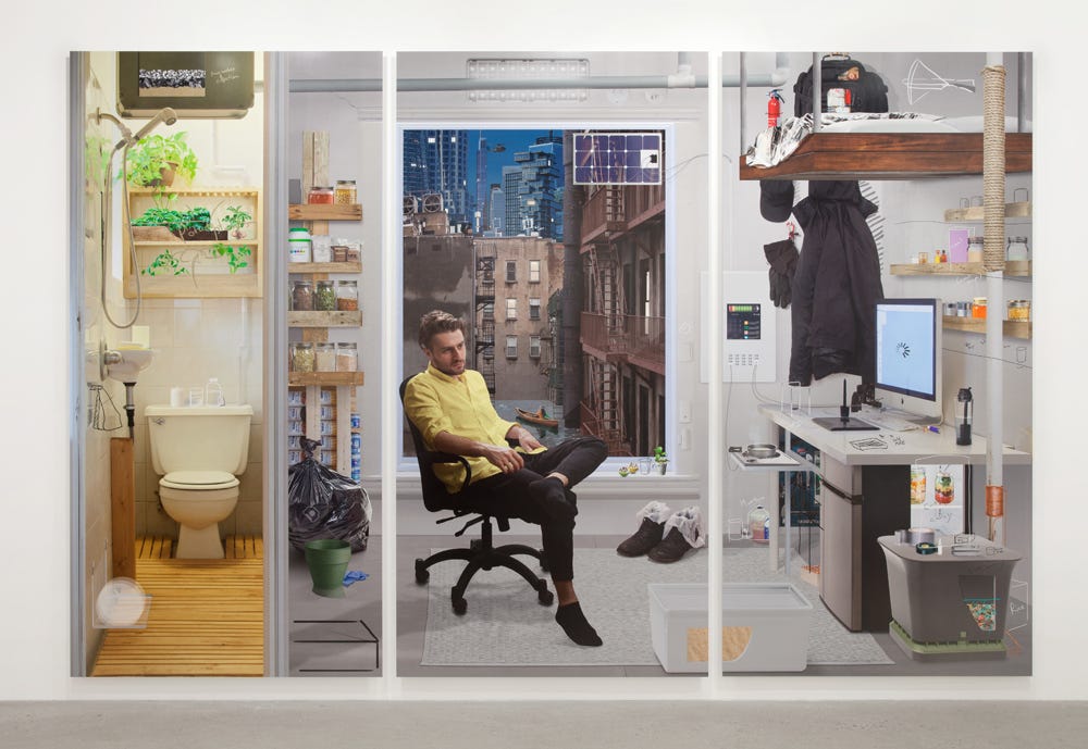 Joshua Citarella: Well, we have not yet felt, fingers crossed, the severe impact of extreme weather in New York. In that dystopian future, New York City is flooded up to the first and a half floor and everyone gets around by canoe.