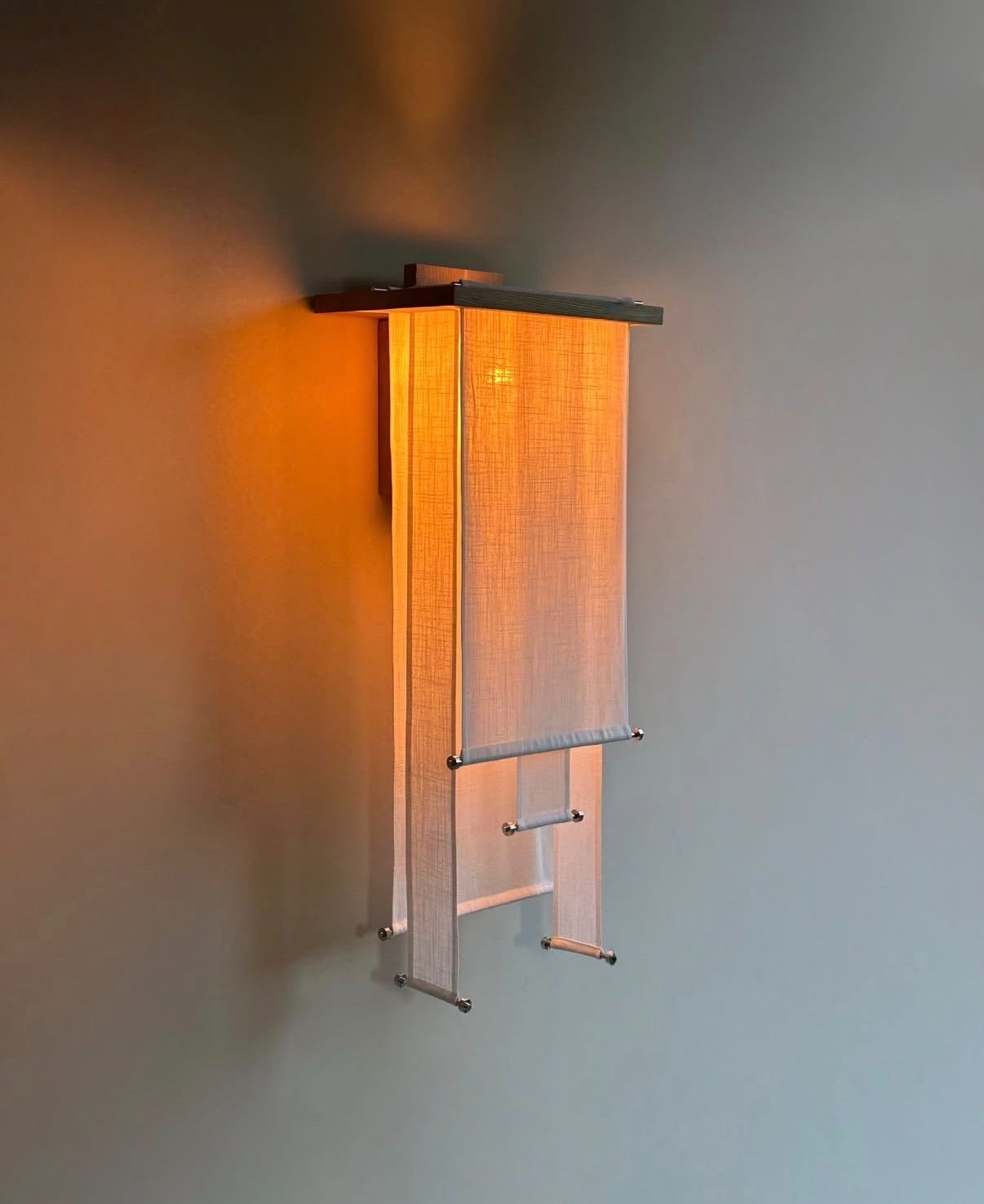 Constructed with long shades made of natural linen subtly filter the light. The base is crafted from oak wood and constructed in Poland.