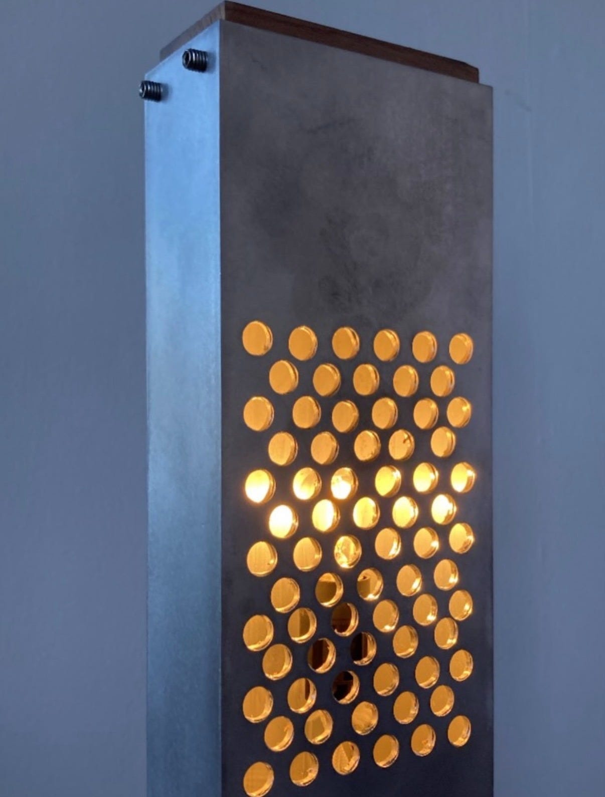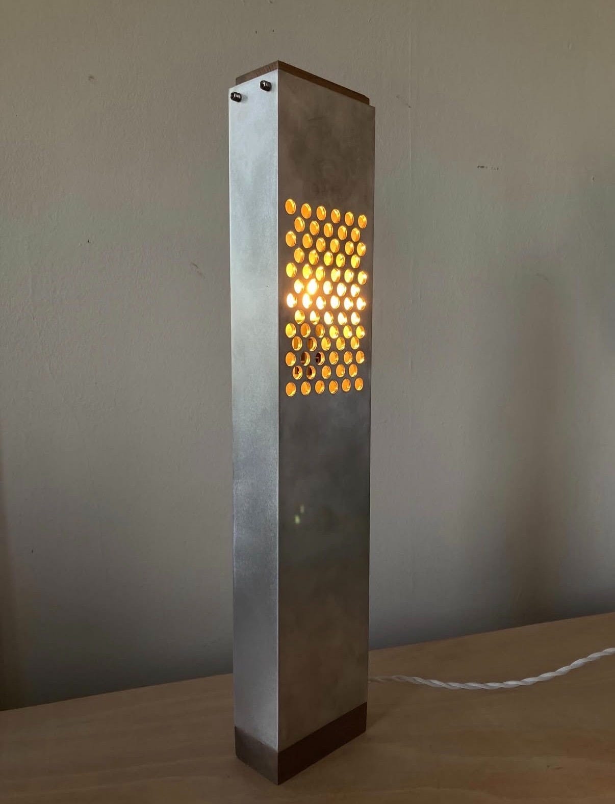Rhodanunn’s lamp reimagines Stupid Engineering’s Cowboy lamp, borrowing the same rectangular aluminum screen design.