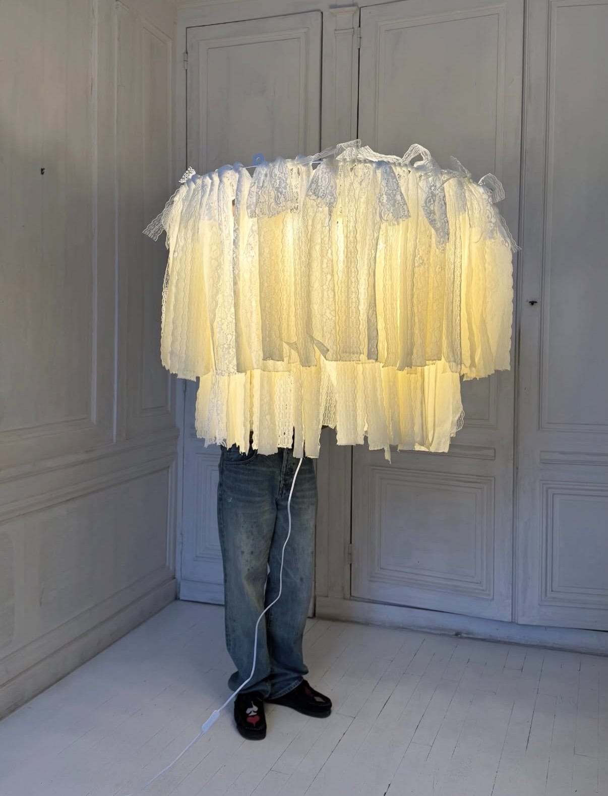 Originally trained at Central Saint Martins in London and now based in Paris, Ducarogue’s lamp is crafted from lace fabric dipped in beeswax.