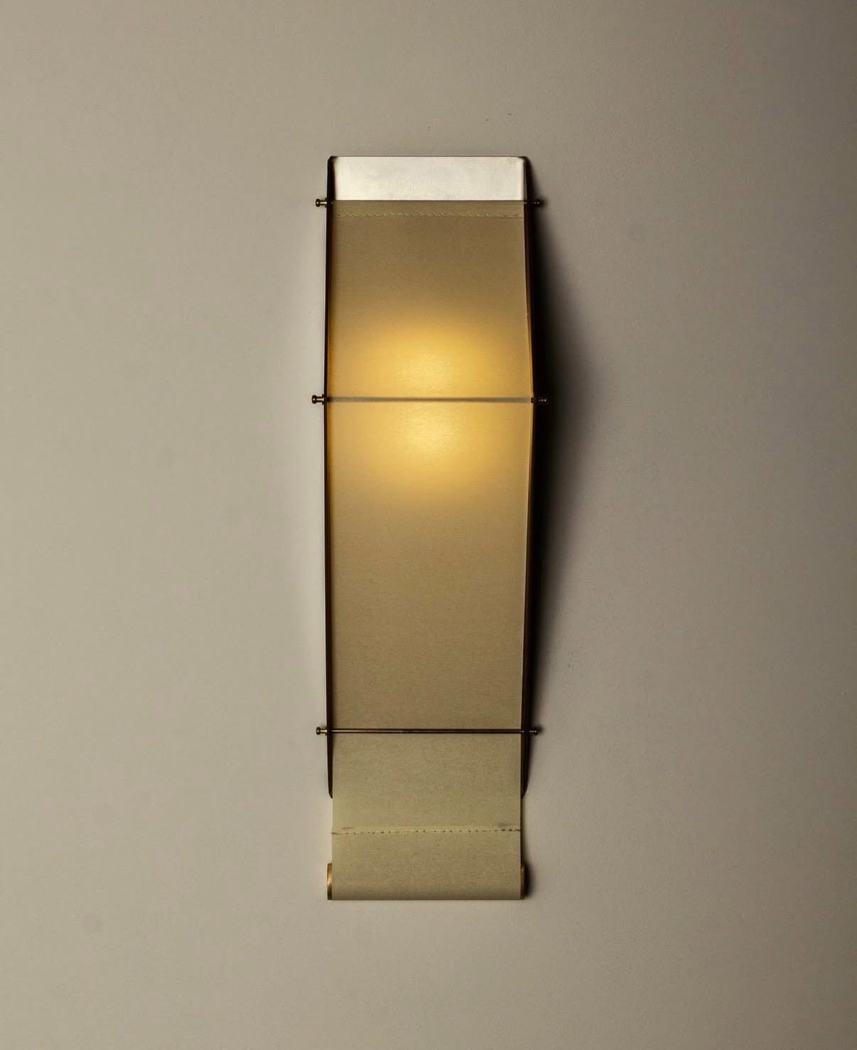 Hailing from Brazil, Ávila’s industrial inspired lamp is made of stainless steel, bronze, parchment paper and brass.