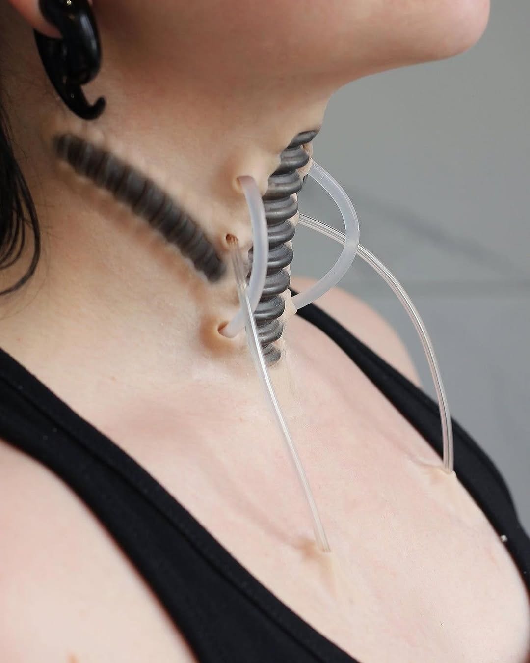 I’ve never really talked about it. Even when I was younger, I always included medical stuff in my work. People love to relate it to so many past artists, this person, that person. When I did my Blood Drain show, I realized where it came from. Like I said, my family had a major accident that still affects us. Blood Drain comes from that. Being a gay boy wanting to do fashion, living in a hospital for three years, it all just came together. I also have this weird thing where there’s a woman in me I always feel really uncomfortable, like breaking her body. I can’t explain that, but that came alive too. It also related to my past relationships with boys and never being treated nicely. So it is a bit of a trauma dump that people don’t know. A very personal thing.