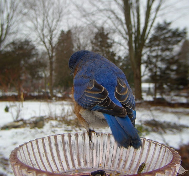 In many species, blue coloration on the back is structural, produced by microscopic feather structures that scatter light rather than pigment. Images via ostdrossel.