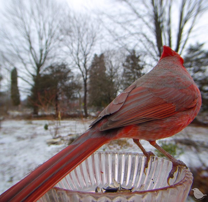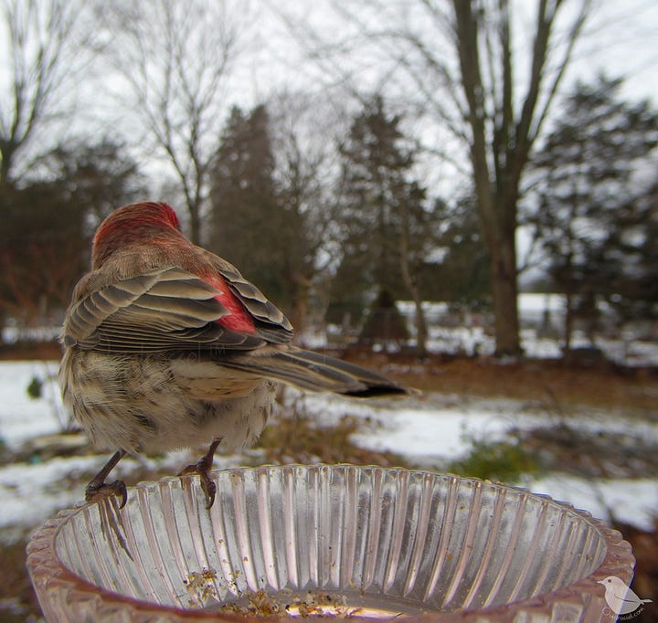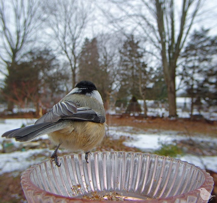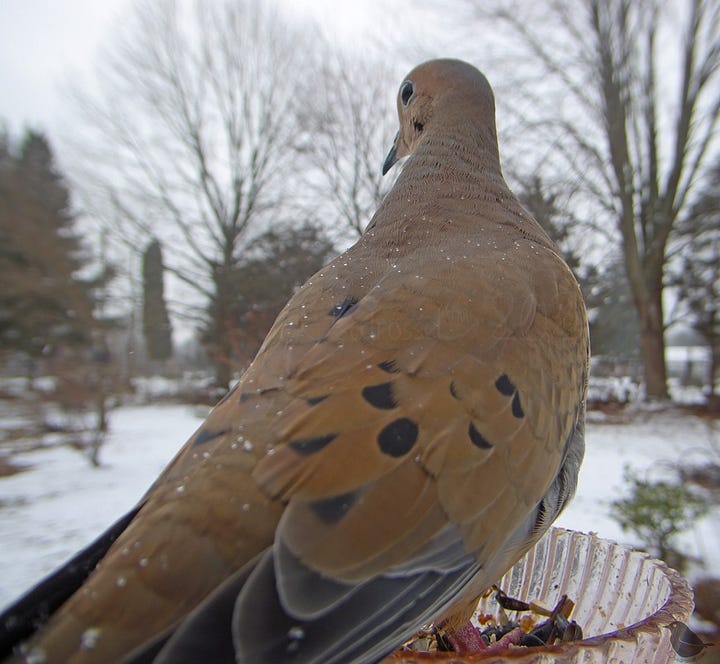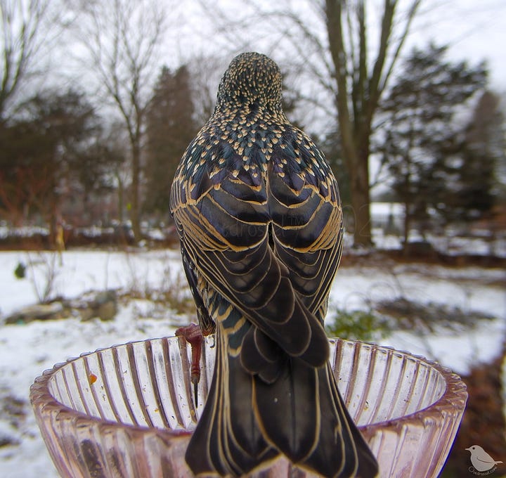 Bird photographed from behind reveal layered feather structures that create pattern and color.