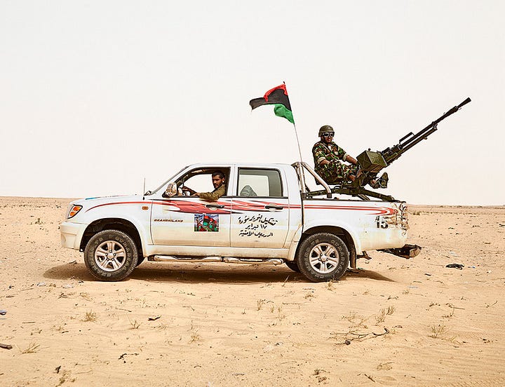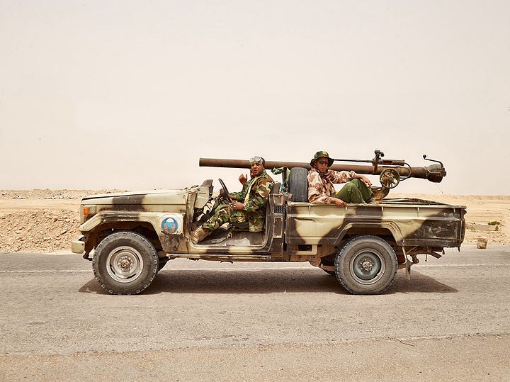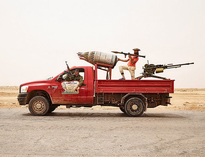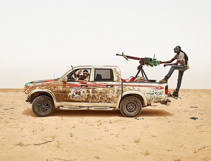 Shot in 2011 near Ajdabiya, James Mollison photographed the improvised pickup trucks used during the uprising against Gaddafi.