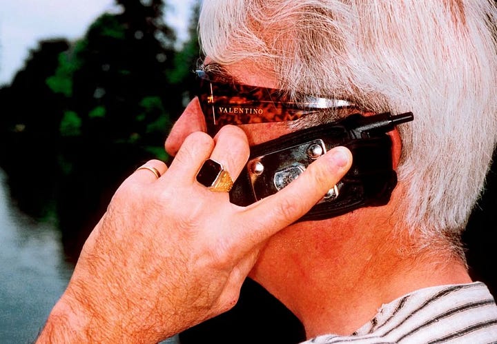 Between 1998 and 2001, British photographer Martin Parr photographed people using mobile phones in public, focusing on their hands and facial expressions across the globe.