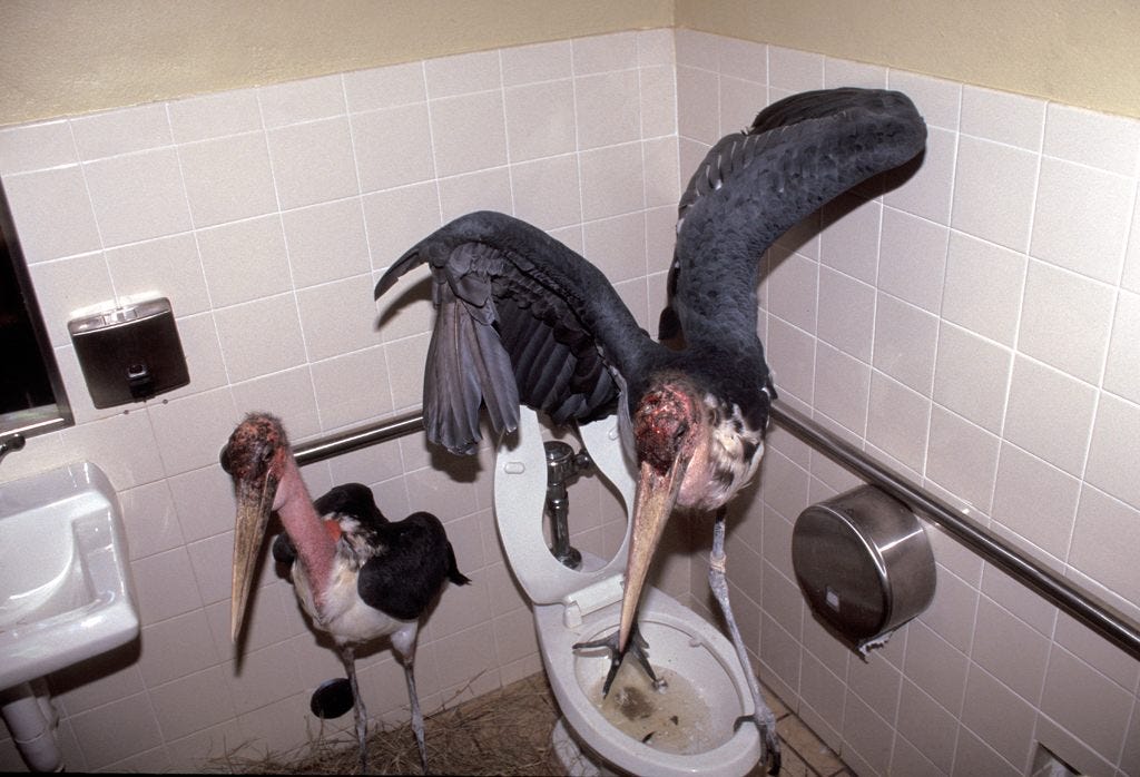 Other birds, such as storks (pictured below) were stored in different bathrooms around the Zoo.